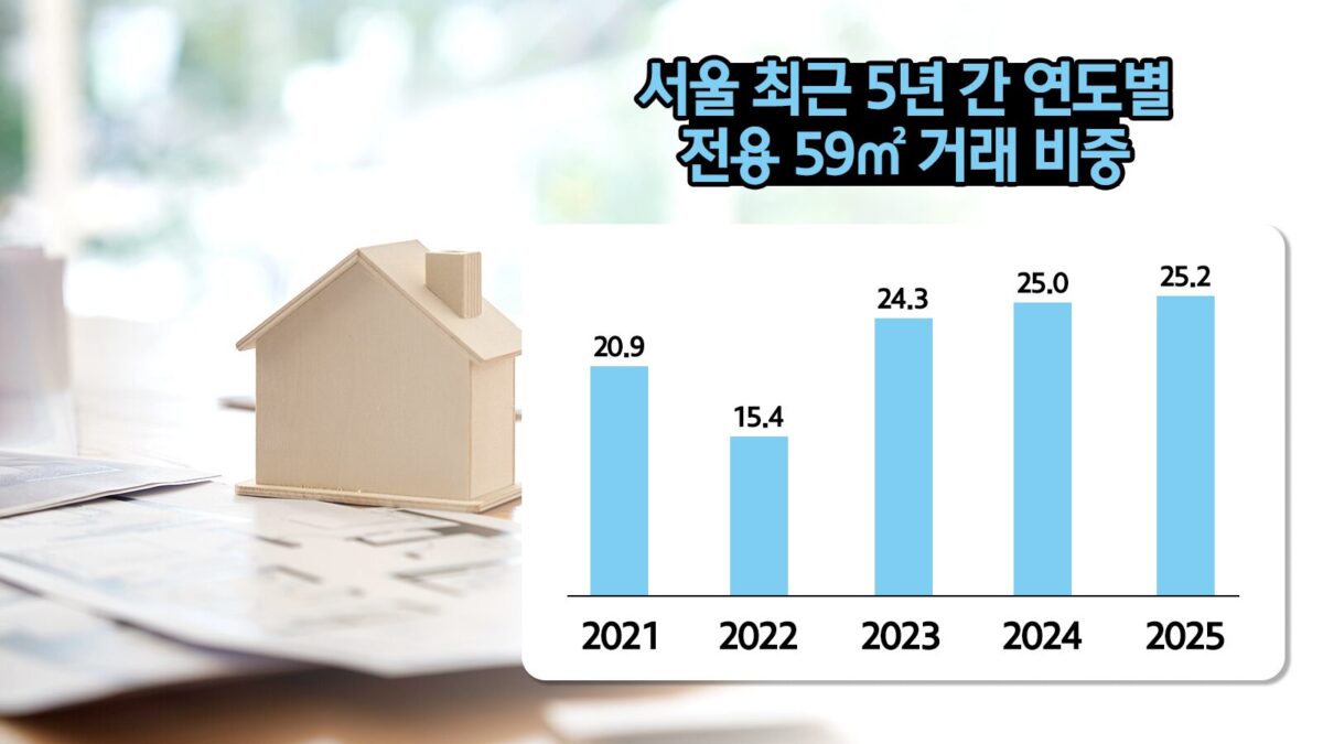 전용 59㎡는 2023년과 2024년에도 각각 24.3%, 25%의 비중을 기록하며 주요 매물로 자리 잡고 있습니다. 서울의 높은 집값, 대출 규제, 1~2인 가구 증가 등을 이유로 전용 59㎡에 대한 수요가 꾸준히 유지되고 있다는 분석입니다. 실수요와 투자수요를 동시에 흡수할 수 있는 주택형이라는 점도 지목됐습니다.