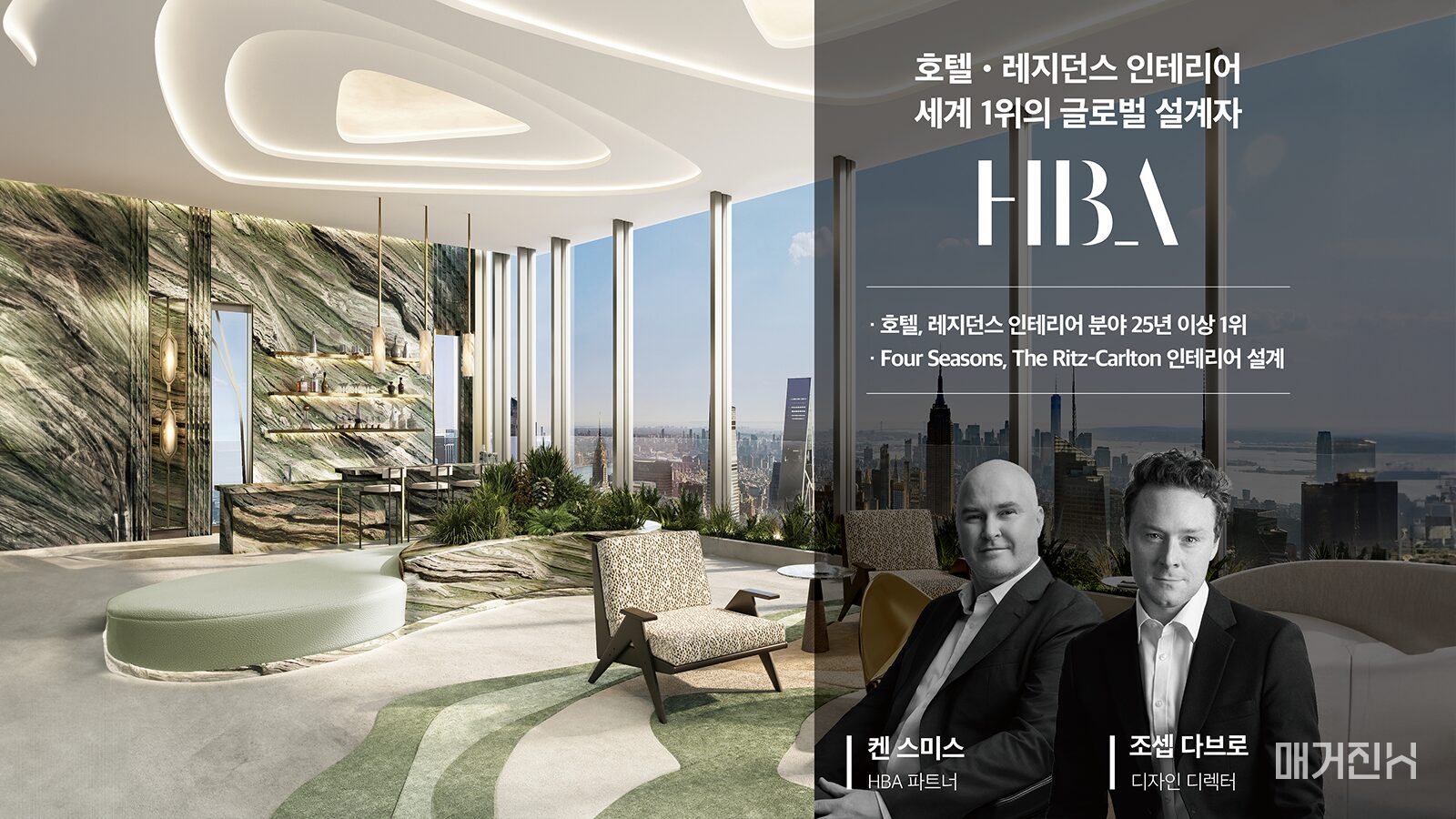 HBA는 1965년 미국에서 설립된 글로벌 인테리어 디자인 그룹으로, ‘인테리어 디자인(Interior Design)’이 발표하는 고객환대시설 디자인 부문에서 25년 이상 1위를 유지해 온 것으로 알려졌습니다. 포시즌스, 리츠 칼튼, 세인트레지스, JW 메리어트 등 글로벌 럭셔리 호텔의 공간 디자인을 수행하며 시장을 선도해 왔으며, 로비와 라운지, 프라이빗 클럽, 웰니스 시설 등 호텔에서 경험할 수 있는 다양한 고급 공간을 주거단지에 적용하며 호텔과 레지던스의 경계를 허무는 디자인으로 높은 평가를 받고 있습니다.